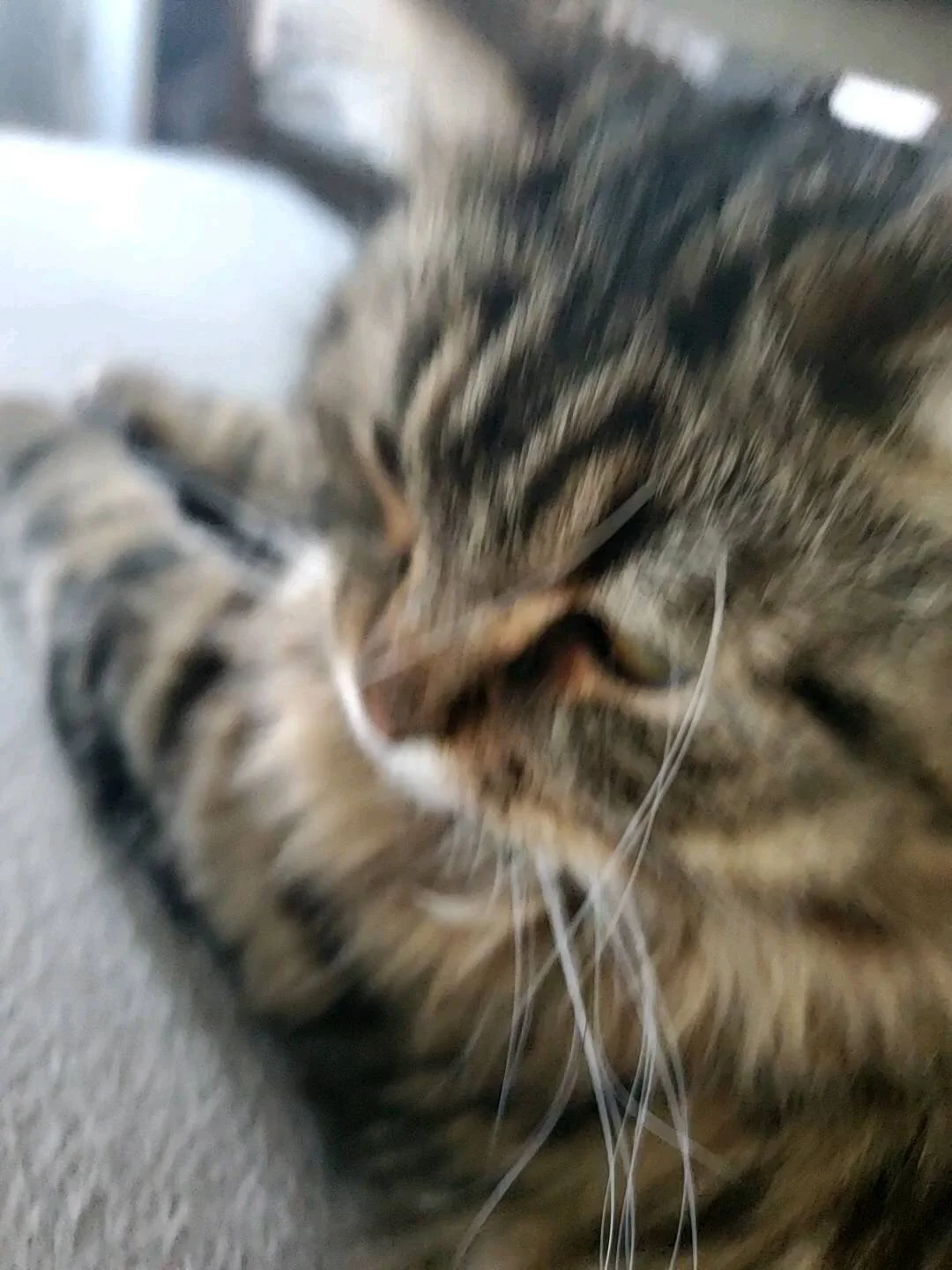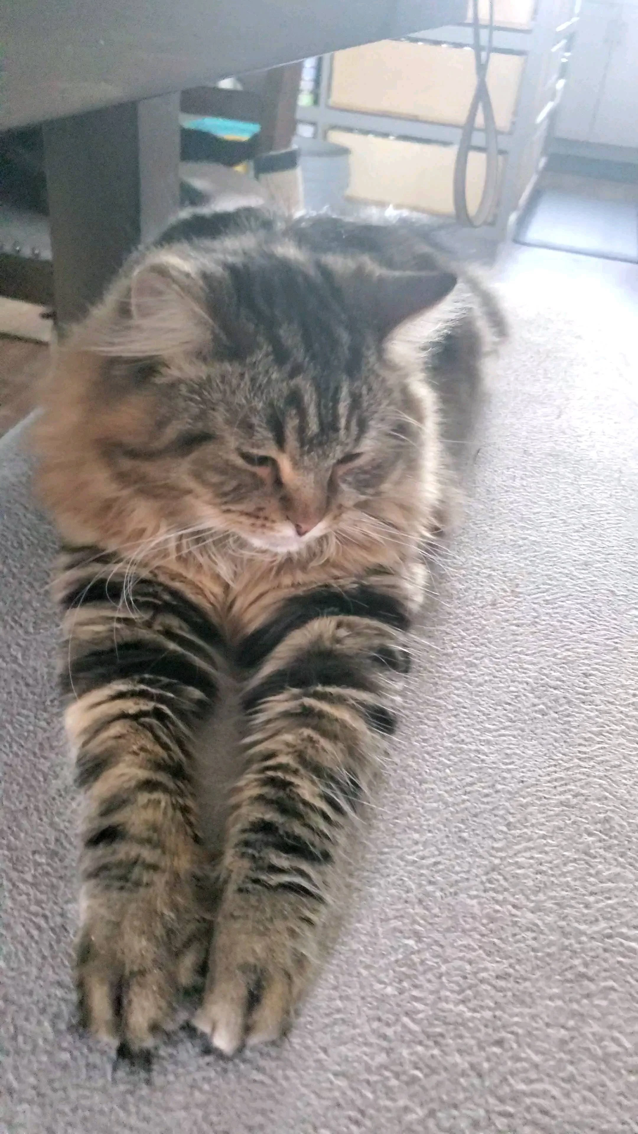 This little girl have strips throughout her body and some more gold with white on her face. Colors are just shimmer on her fluffy body.